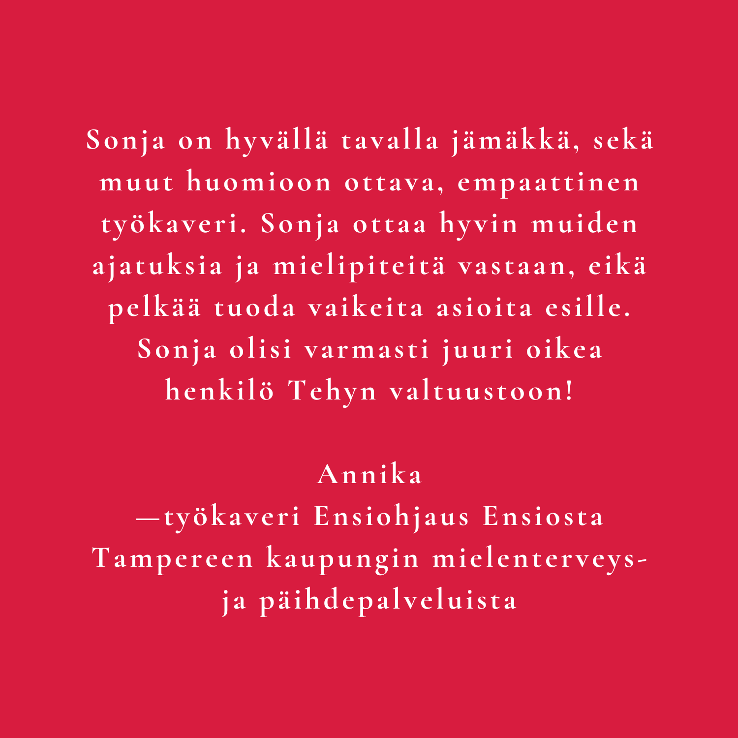 Ystävänpäivän kunniaksi pyysin suosituksia ystäviltäni. Kysyin kanssani työskennelleiltä, millainen minä heidän mielestään olen ja miksi minua kannattaa äänestää.